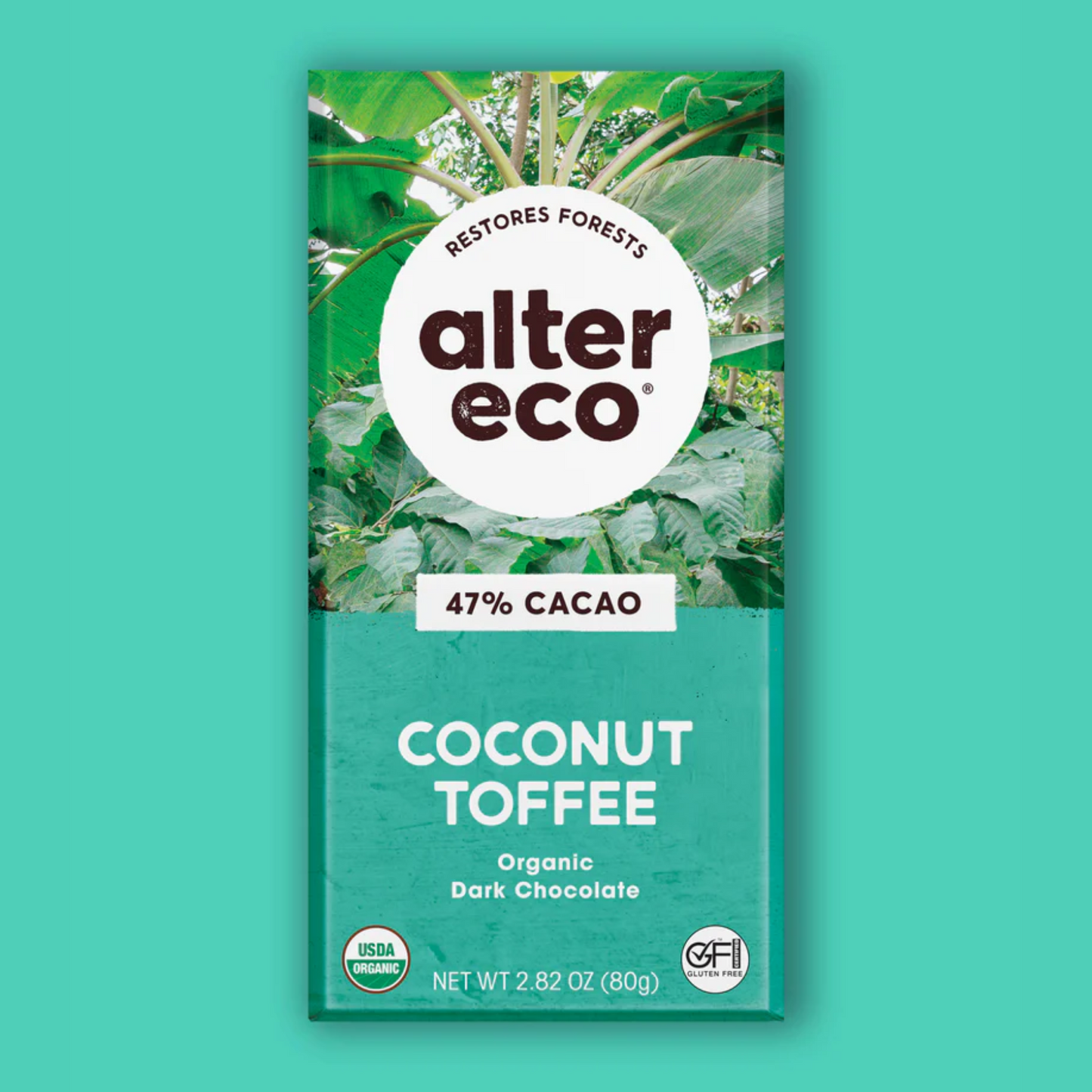 Alter Eco Chocolate 80g, Dark Salted Coconut Toffee Flavour 47% Cacao, Certified Organic