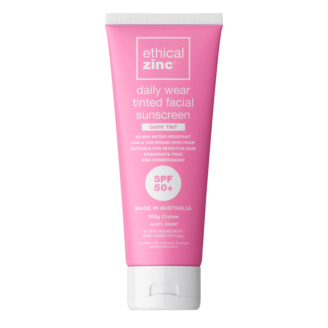 Ethical Zinc SPF50+ Daily Wear Tinted Facial Sunscreen 100g, Dark Tint