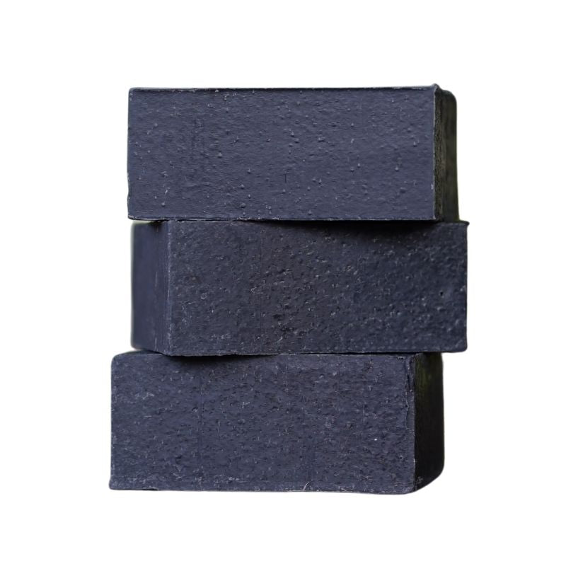 Saponified oils (olive oil, coconut oil), Activated charcoal powder, Bentonite clay, Exfoliating pumice (optional inclusion), Essential oil blend & fragrance (natural skin safe)
