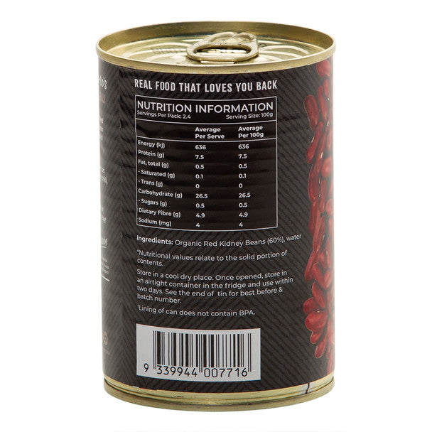 Honest To Goodness Organic Red Kidney Bean 400g, No Added Salt & Australian Certified Organic