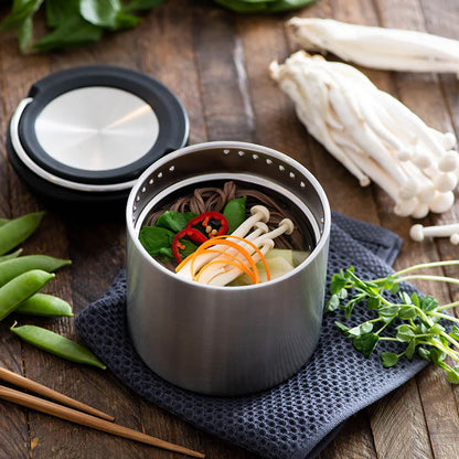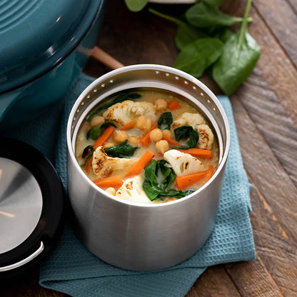 TK Closure internal thread design increases thermal performance. Climate Lock™ double-wall vacuum insulation keeps contents hot for 11 hours and cold for 45 hours. Lid locks into place with just a quarter turn. Wide-mouth design for easy eating and filling. Easy carry, swivel loop. 18/8 food-grade stainless steel and electro polished interiors don't retain or impart flavors. Stackable, elegant design. Dishwasher safe. Backed by the lifetime Strong as Steel guarantee.