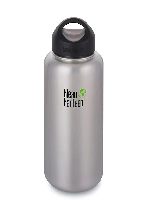 Klean Kanteen Wide Mouth With Wide Loop Cap 40oz (1182ml), Brushed Stainless, Leak Proof Cap