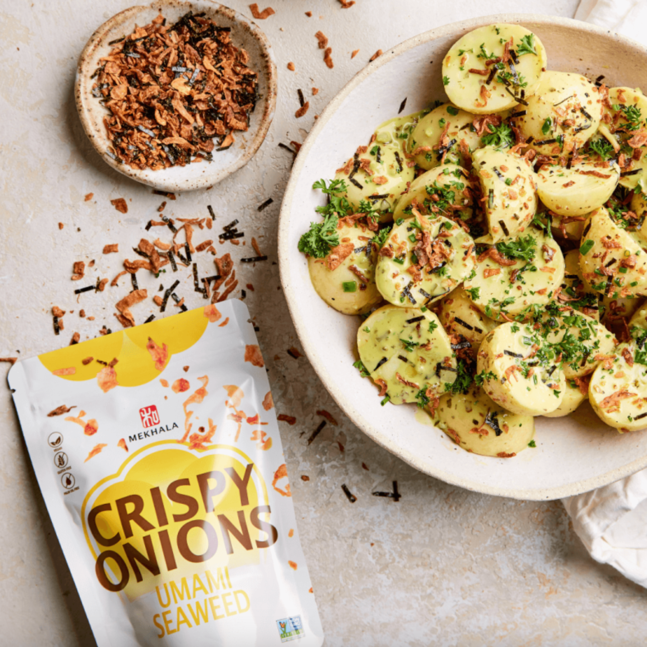 Move over chile crisp – Mekhala’s Non-GMO crispy onions are here to revolutionize your meals! This crunchy topping and snack is the ultimate kitchen essential you didn’t know you needed but won’t be able to live without. Made from red shallots and cooked in small batches with 100% plant-based and Non-GMO crispy onions ingredients, Mekhala brings you the Asian cook’s best-kept secret in every pouch.