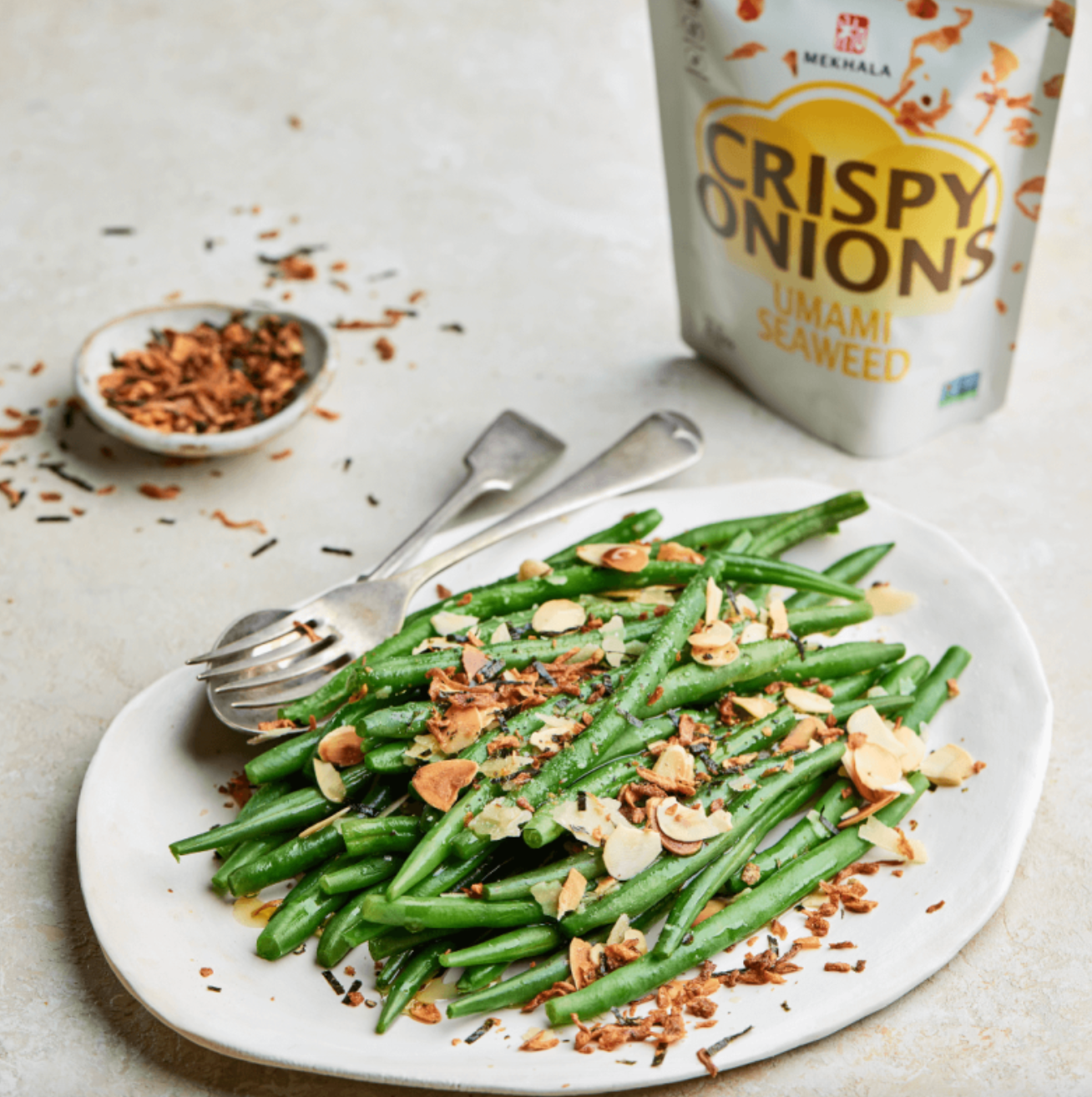 Mekhala’s Umami Seaweed Crispy Onions are made with Non-GMO ingredients and cooked in rice bran oil for a satisfying, crunchy texture. Tossed with organic soy and enhanced with crisp seaweed flakes, these Asian crispy onions add delicious umami flavor to a variety of dishes – perfect for the whole family to enjoy.