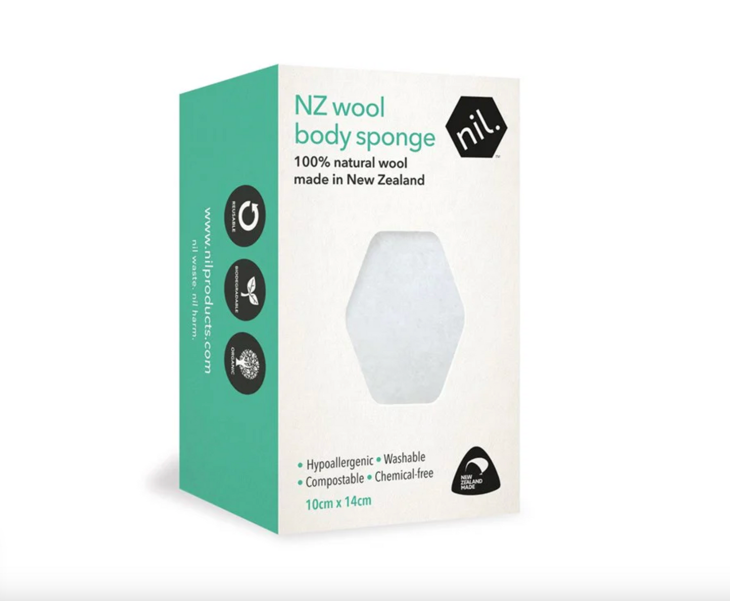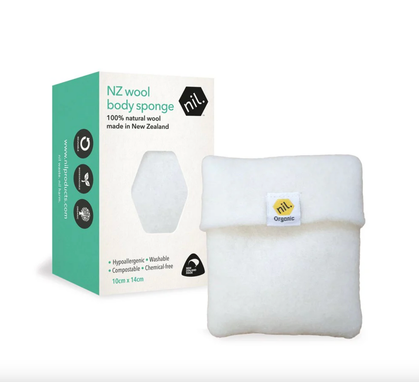 NIL New Zealand Wool Body Sponge 10cmx14cm, 100% Natural Wool