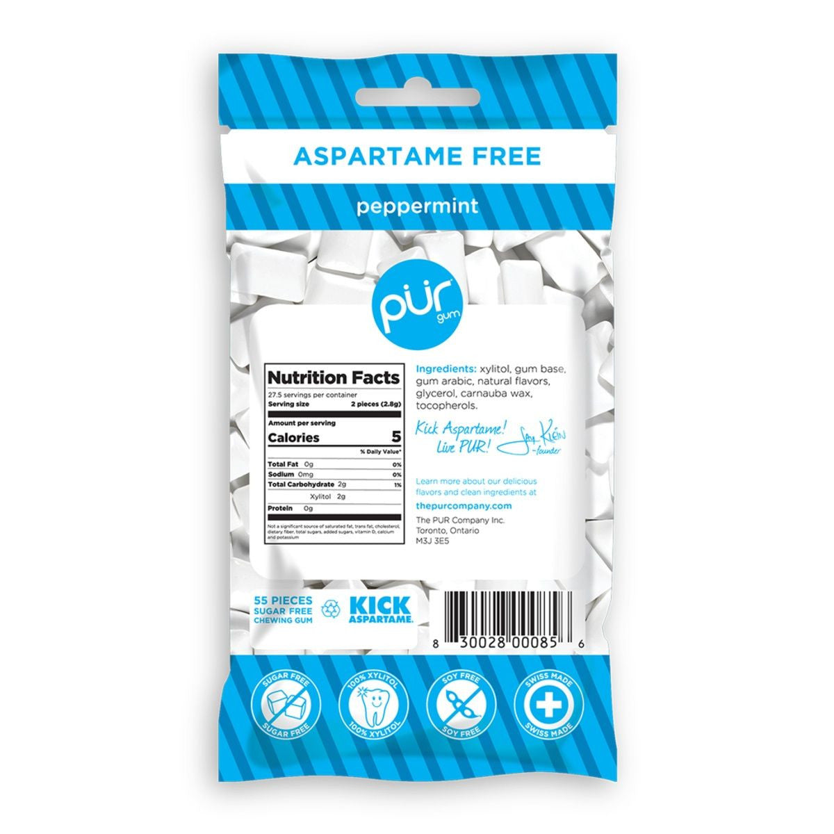 PUR Peppermint Gum Single Bag 77g Or A Box Of 12, Aspartame Free & Gluten Free {Resealable Bag}