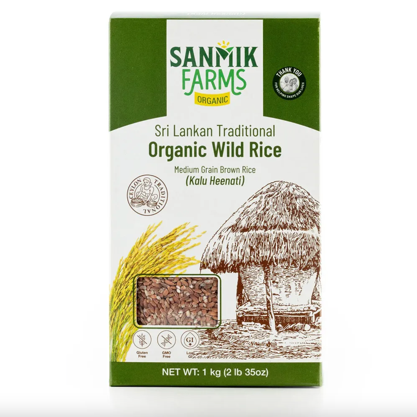 Sanmik Farms Organic Wild Rice 1kg, Medium Grain Brown Kalu Heenati