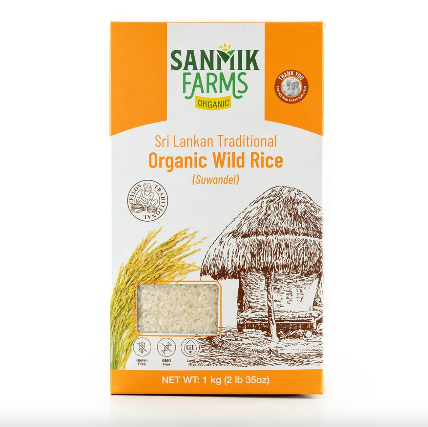 Sri Lankan Traditional Organic Wild Rice ( Suwandel) is grown in harmony with nature following ancient sustainable farming methods in organically certified farms in Sri Lanka. This rice grain variety - with its exquisite aroma and milky taste- contains great nutritional values.