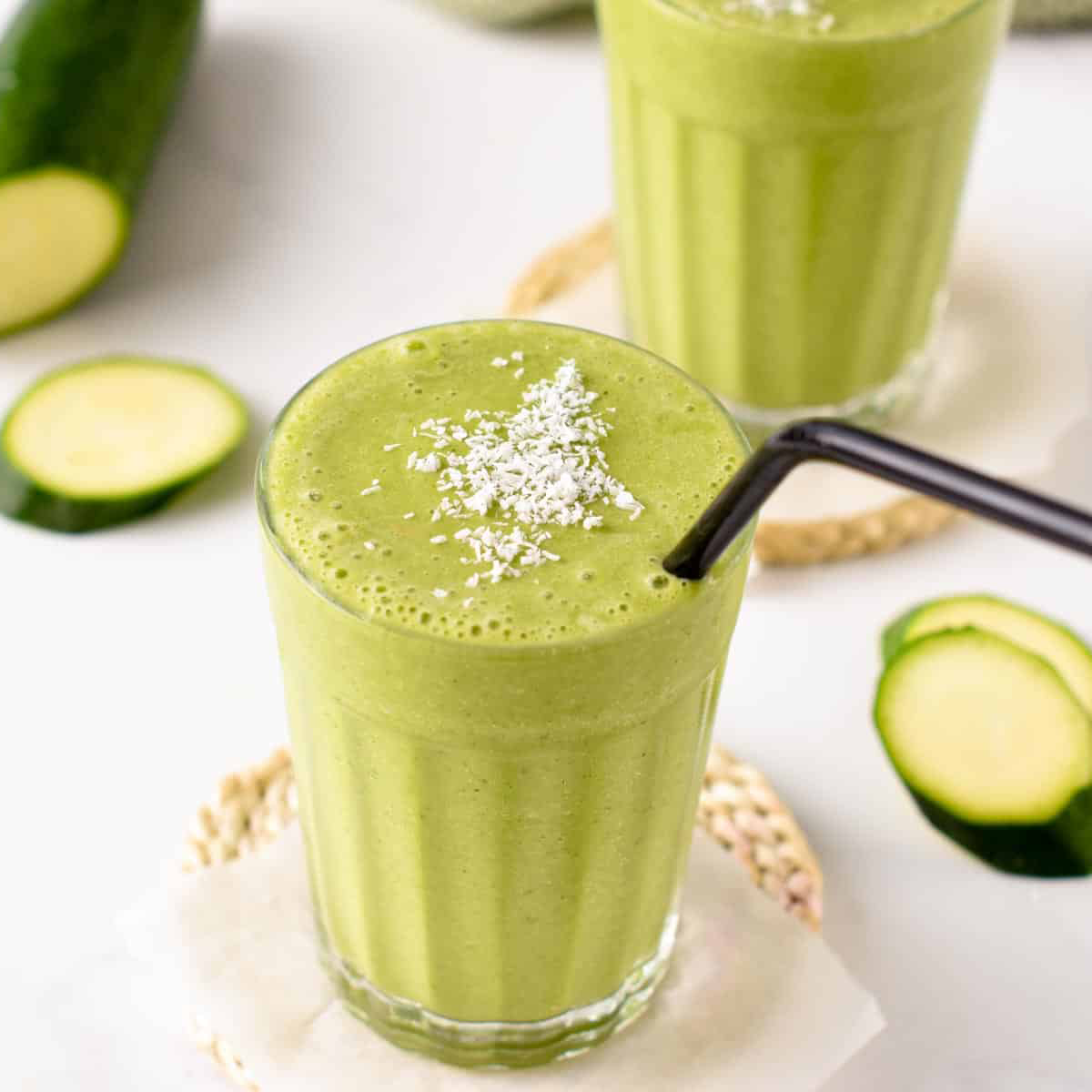 zucchini*, cucumber*, l-carnitine, desiccated coconut*, vegan protein*, banana*, macadamia mylk