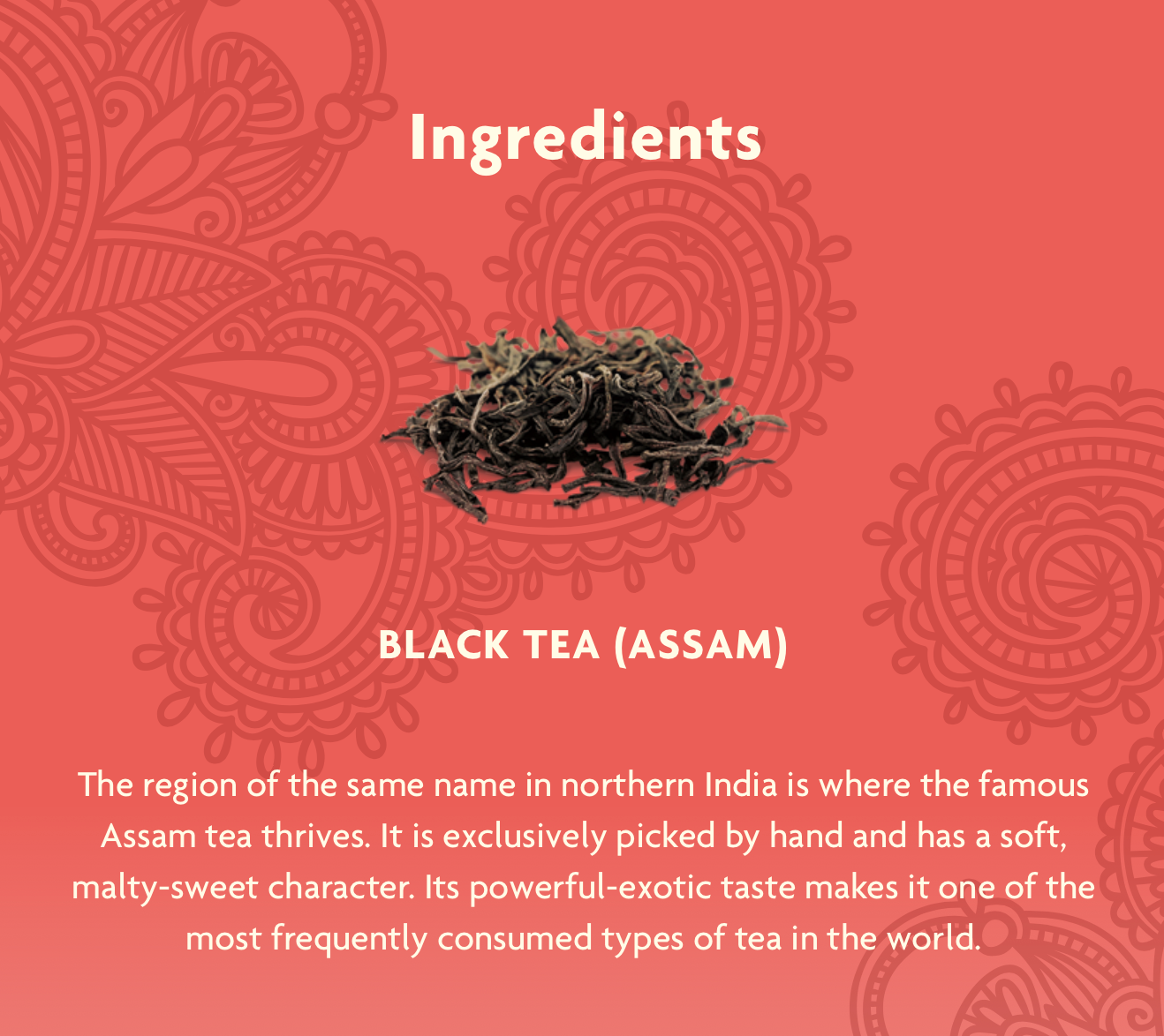 Assam Black tea is a black tea named after the region of its production: Assam, India; one of the only two areas in the world with native tea plants. Assam Black tea is one of the most recognized teas in the world, and is characterized by its rich body, briskness, malty flavor and strong, bright color.