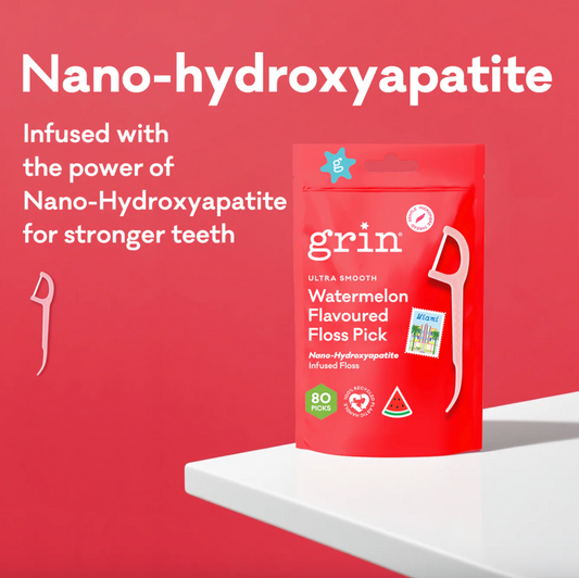 Grin Ultra Smooth Watermelon Flavoured Floss Pick 80 Picks, Infused With Nano-Hydroxyapatite