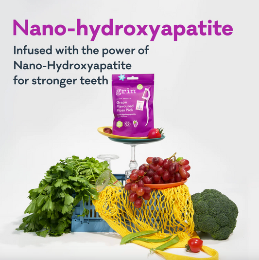 Grin Ultra Smooth Grape Flavoured Floss Pick 80 Picks, Infused With Nano-Hydroxyapatite